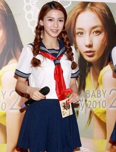 張柏芝の「喜劇之王(邦題:喜劇王)」中の登場人物、絶世の美人役。制服姿は、マンガの美少女戦士のようだ。
